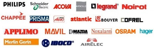 Legrand, Hager, Daikin, Thermor, Noirot, Atlantic, Applimo, Came, Schneider Electric, Osram, Philips, Michaud, Arnould, Merlin Guerin, ...